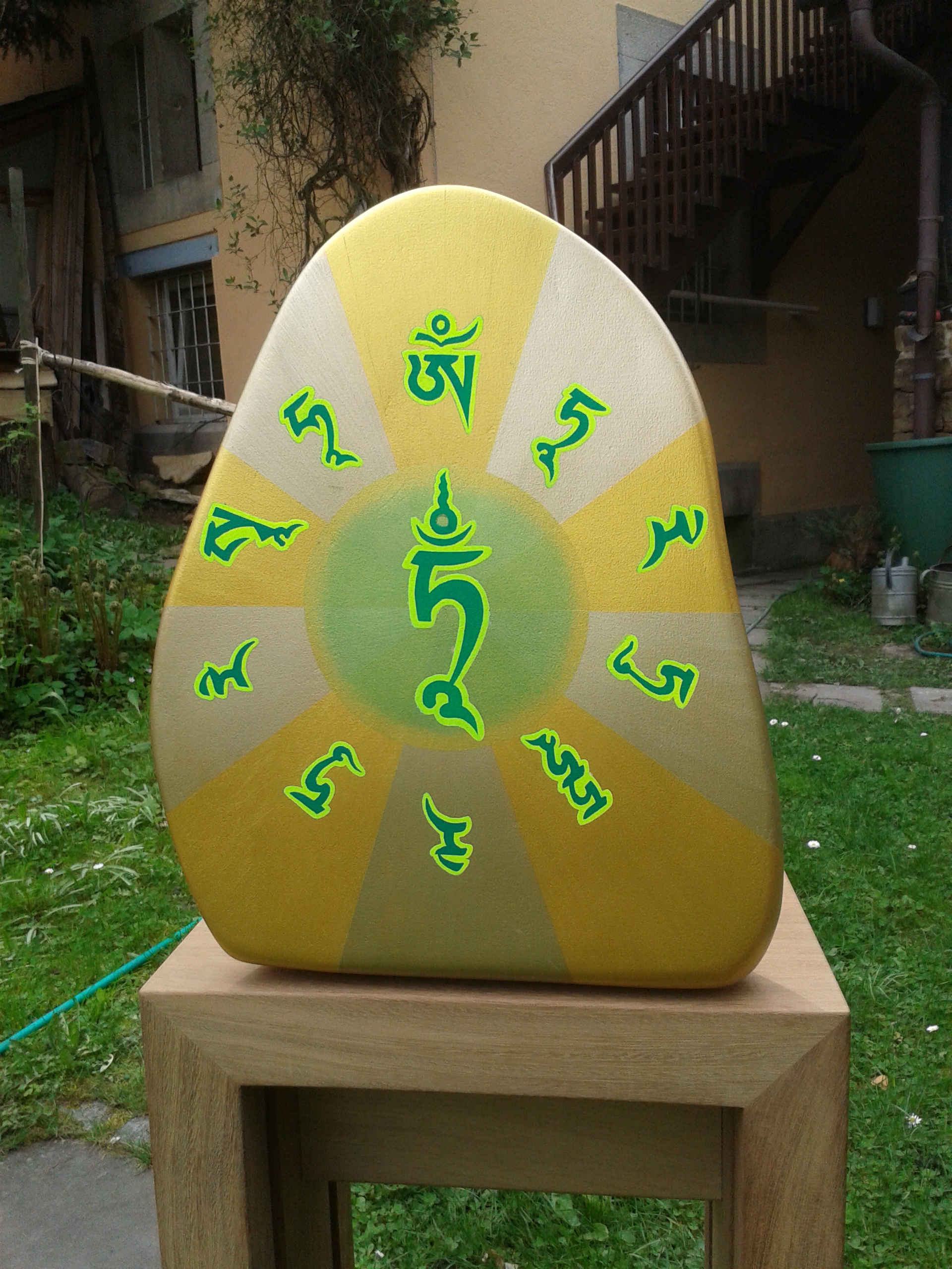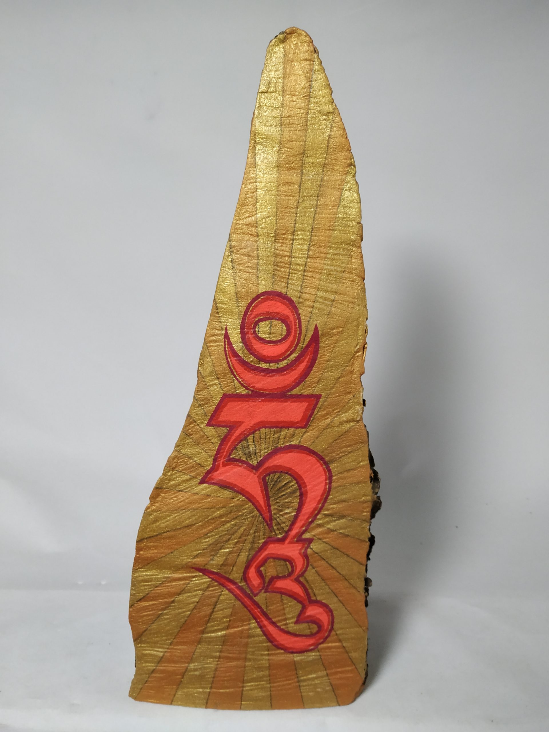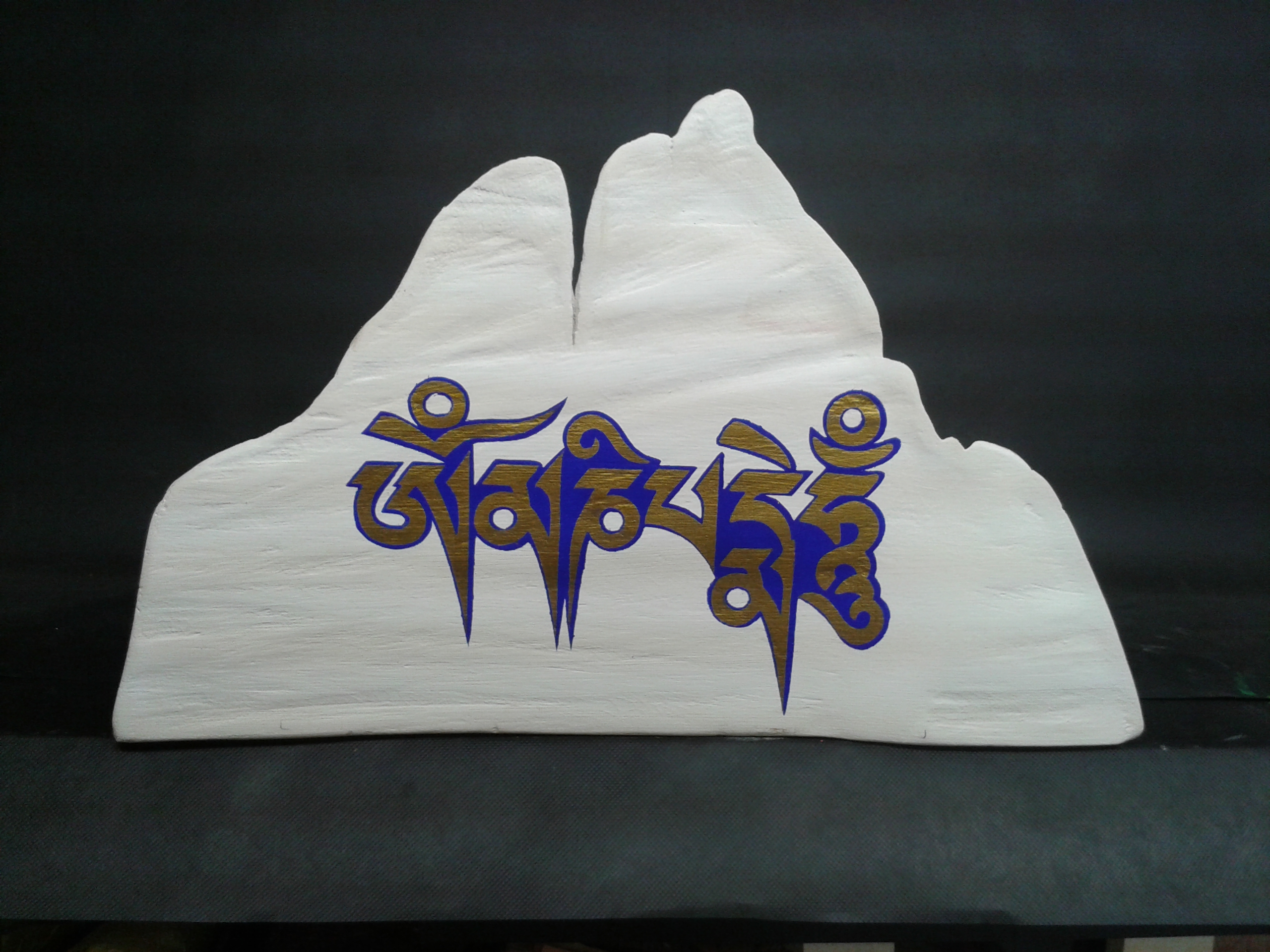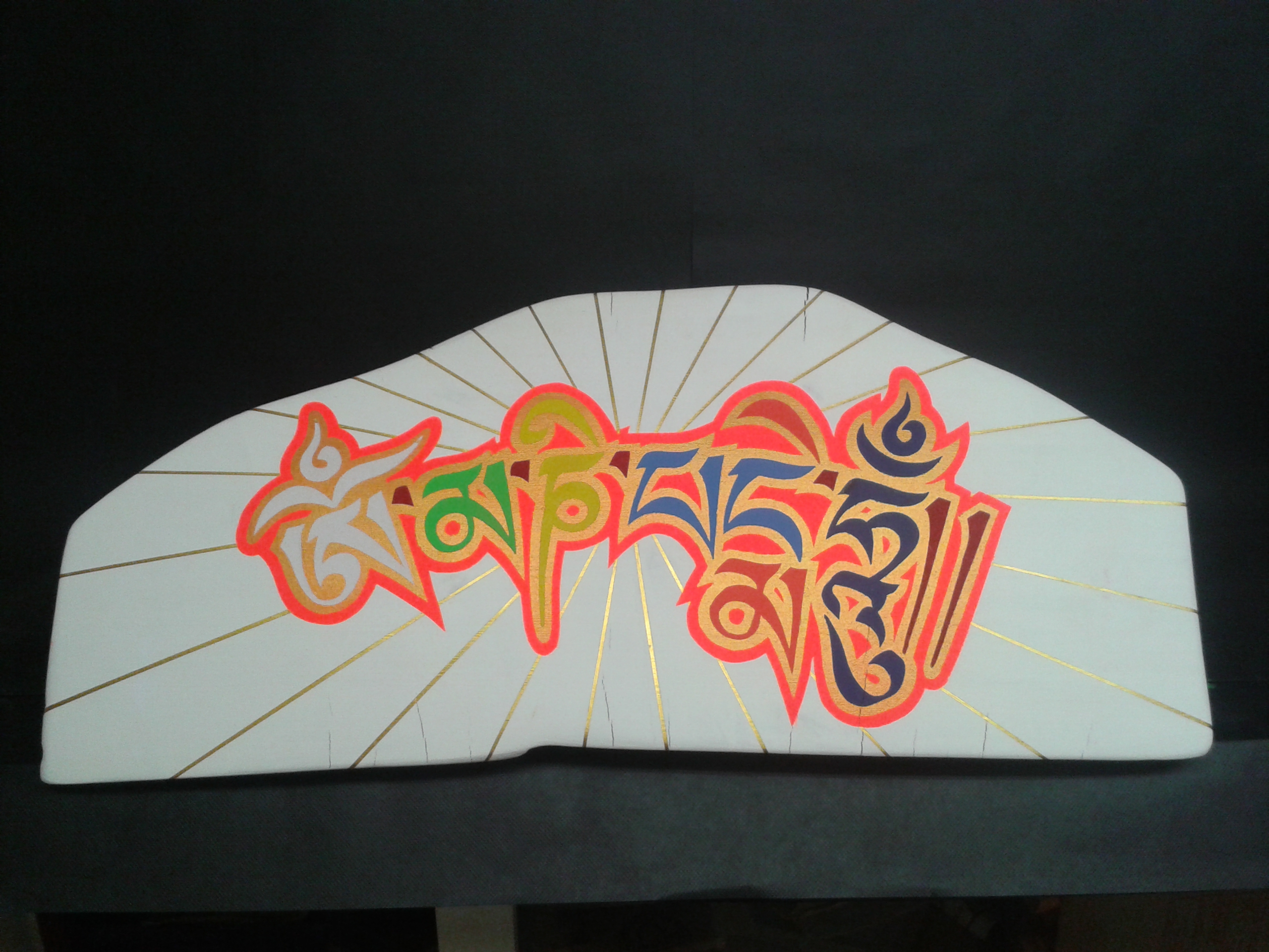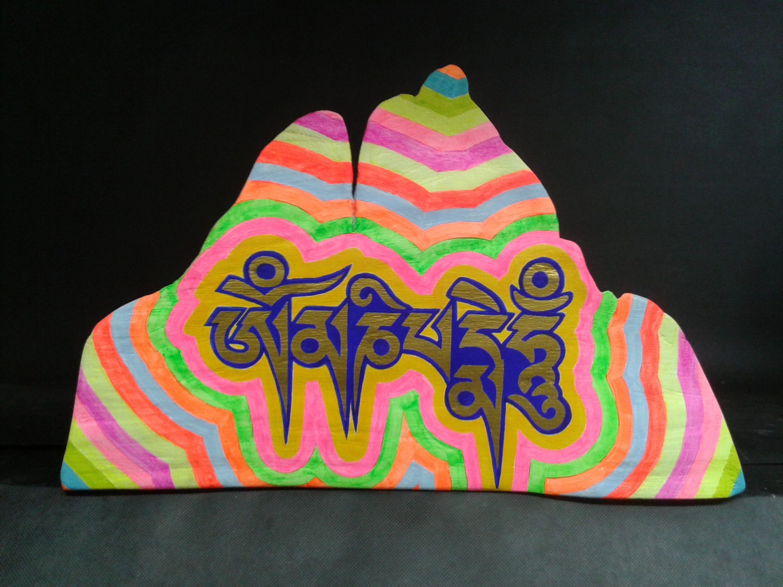 Martin Schnee bearbeitet die vorbehandelten Hölzer weiter. Er grundiert/ bemalt die Holzrohlinge. Auf dem farbigen Hintergrund bringt er ein Mantra an. Farben haben im tibetischen Buddhismus traditionell eine tiefere Bedeutung. Martin Schnee gestaltet Manihölzer in traditionellen Farben und befreit sich aber auch davon und kreiert seine eigenen Farbwelten. Er hat sich intensiv mit der Symbol – und Farbwelt des Buddhismus auseinandergesetzt und hatte die Gelegenheit bei seiner Pilgerreise nach Nepal Einblicke in die Tsering Artschool im Kloster shechen in Nepal zu bekommen.