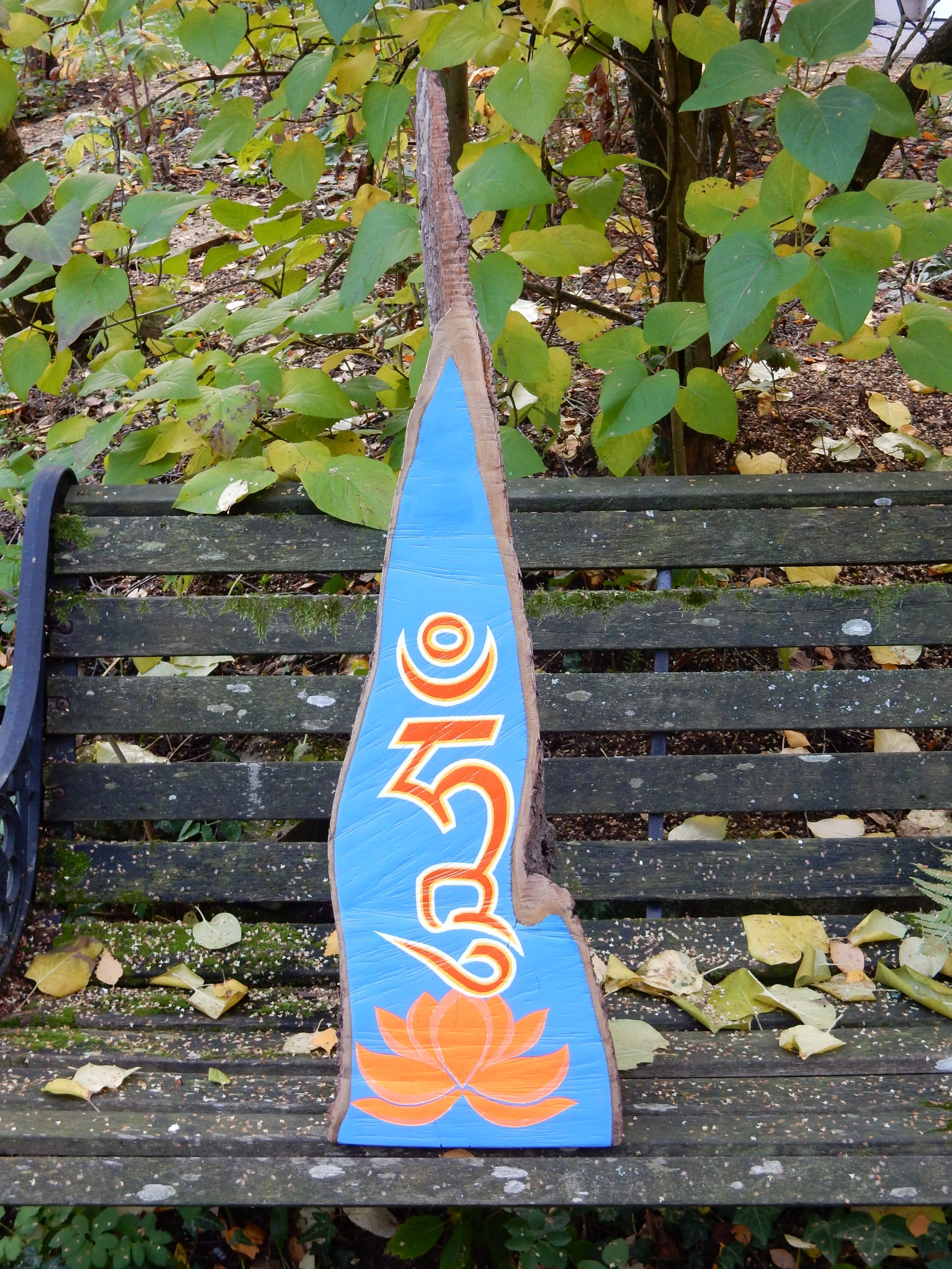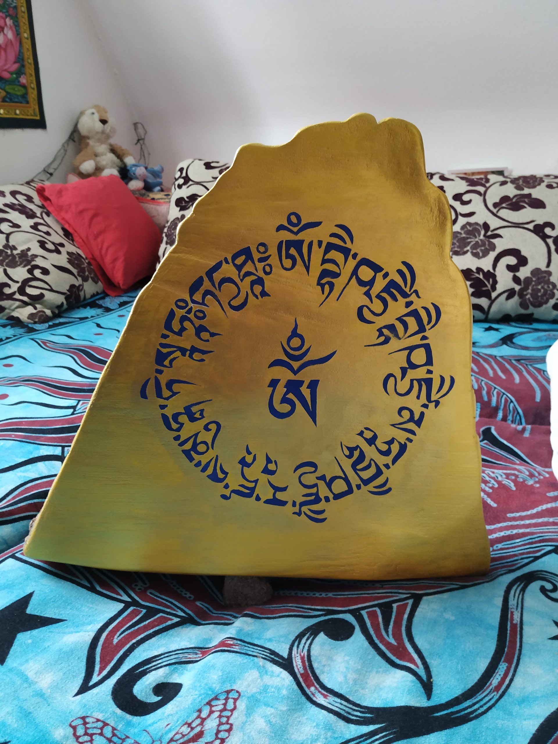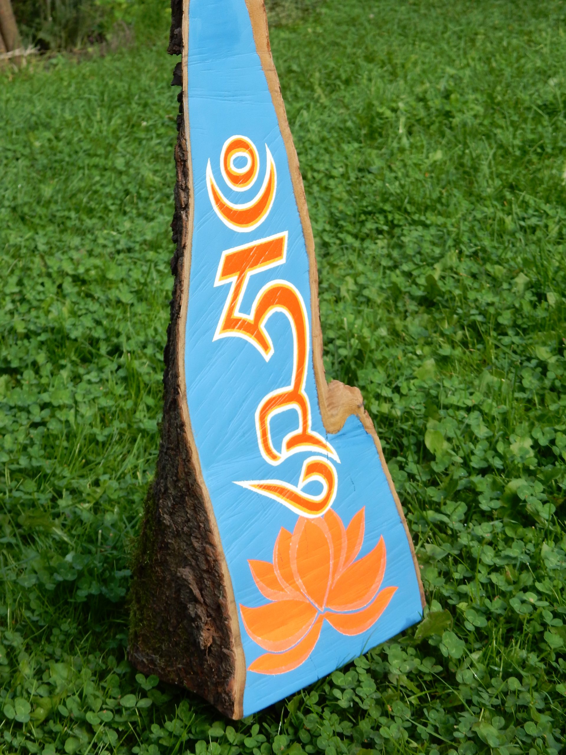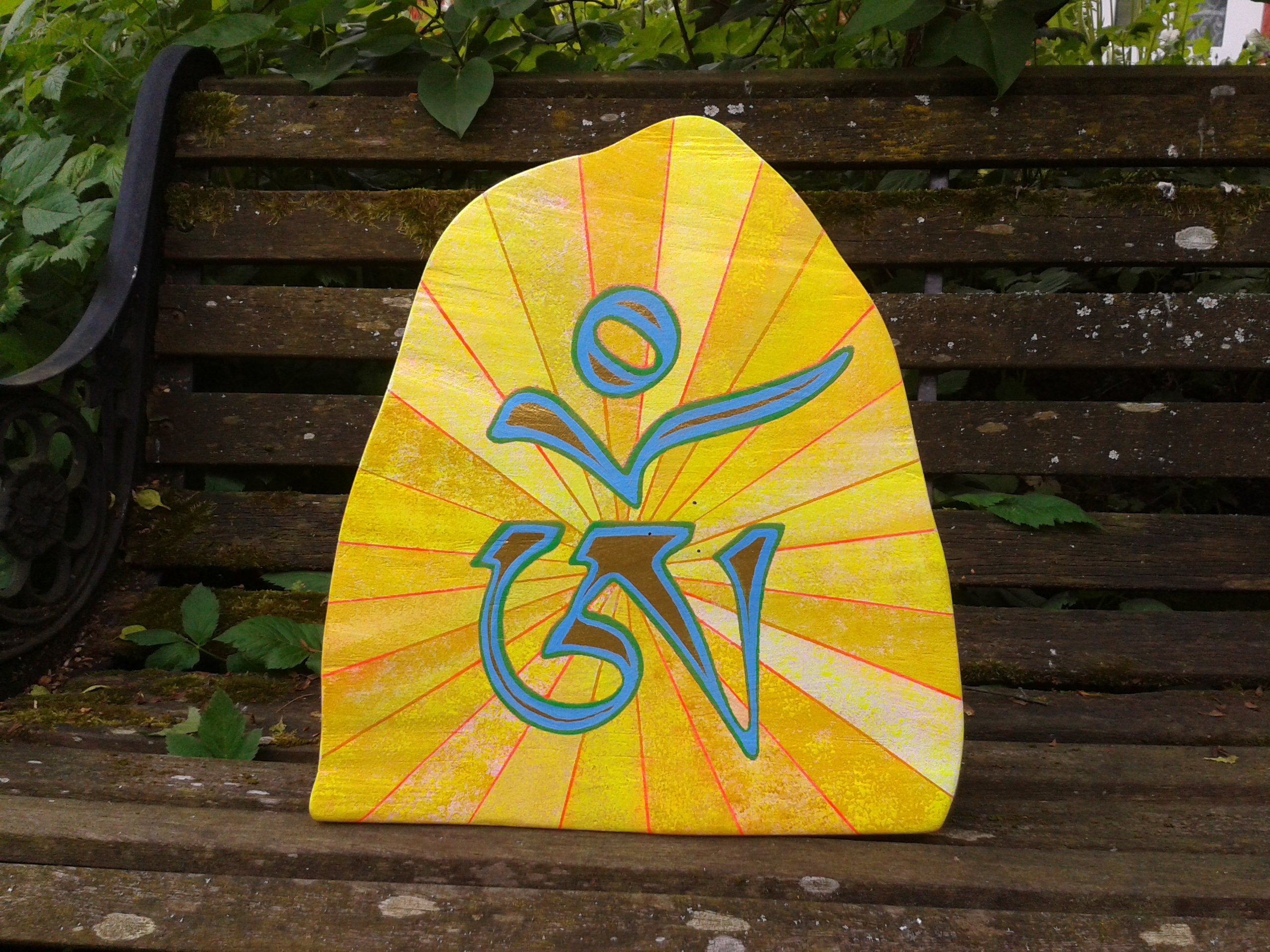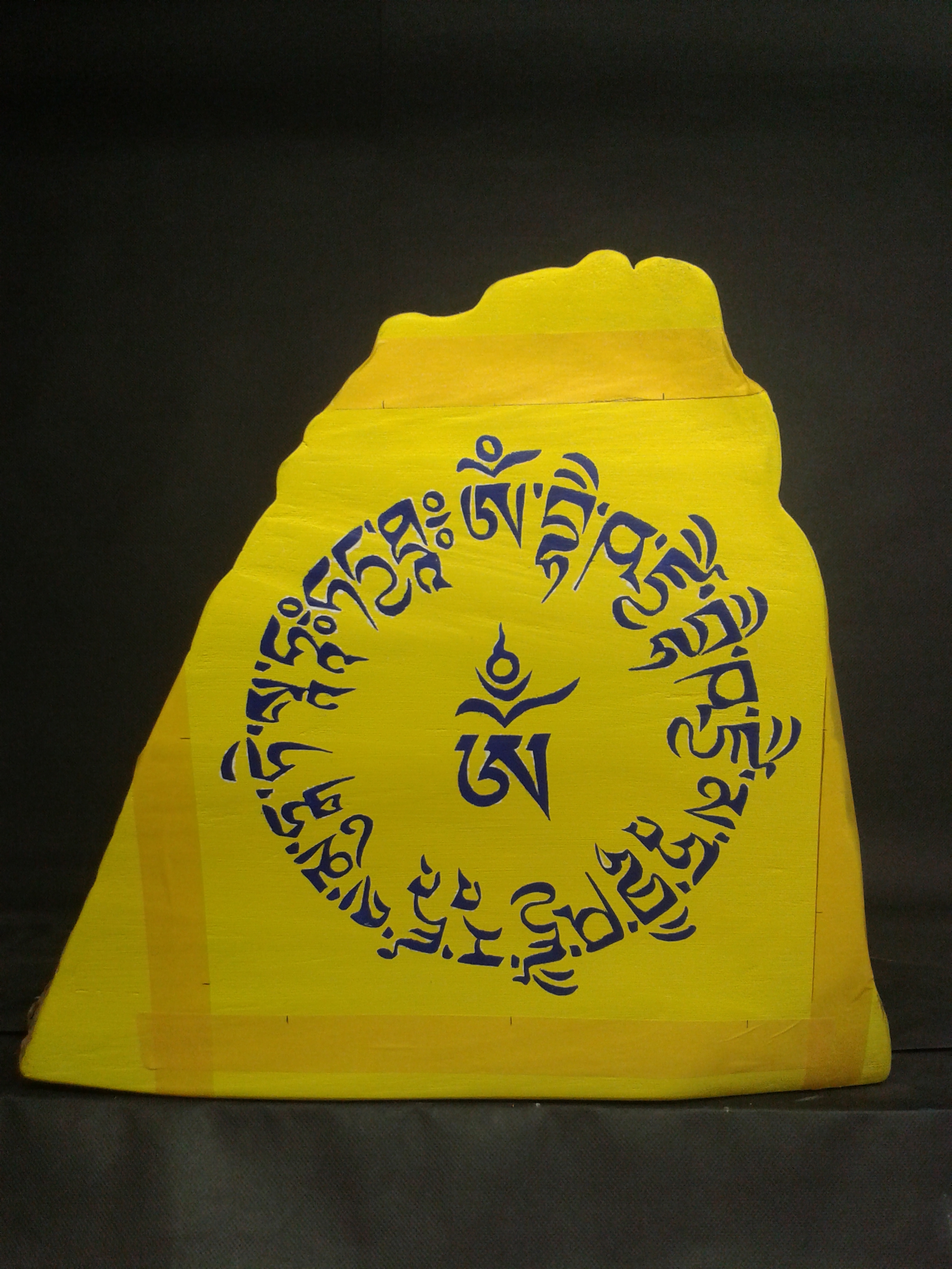 Martin Schnee bearbeitet die vorbehandelten Hölzer weiter. Er grundiert/ bemalt die Holzrohlinge. Auf dem farbigen Hintergrund bringt er ein Mantra an. Farben haben im tibetischen Buddhismus traditionell eine tiefere Bedeutung. Martin Schnee gestaltet Manihölzer in traditionellen Farben und befreit sich aber auch davon und kreiert seine eigenen Farbwelten. Er hat sich intensiv mit der Symbol – und Farbwelt des Buddhismus auseinandergesetzt und hatte die Gelegenheit bei seiner Pilgerreise nach Nepal Einblicke in die Tsering Artschool im Kloster shechen in Nepal zu bekommen.