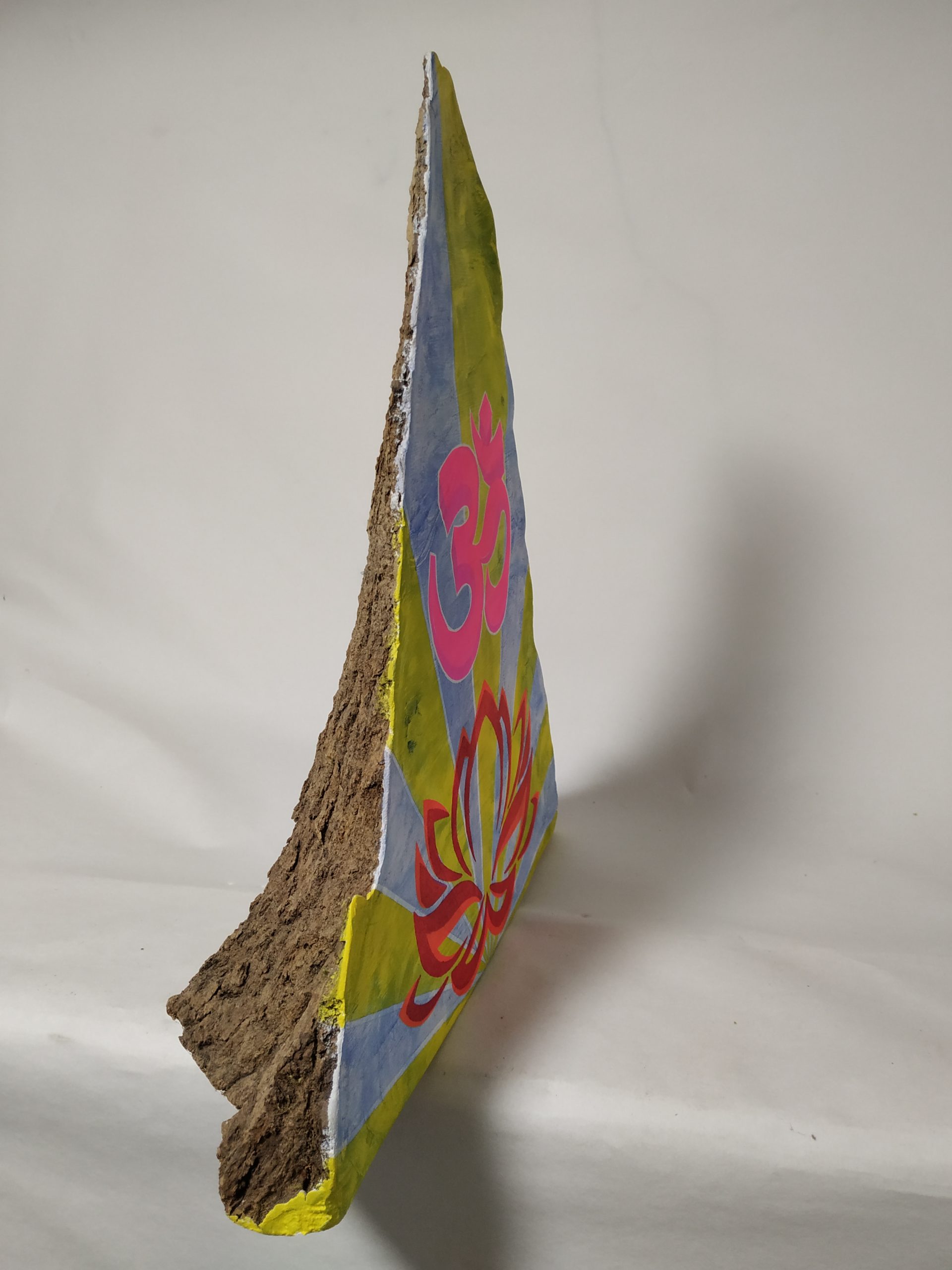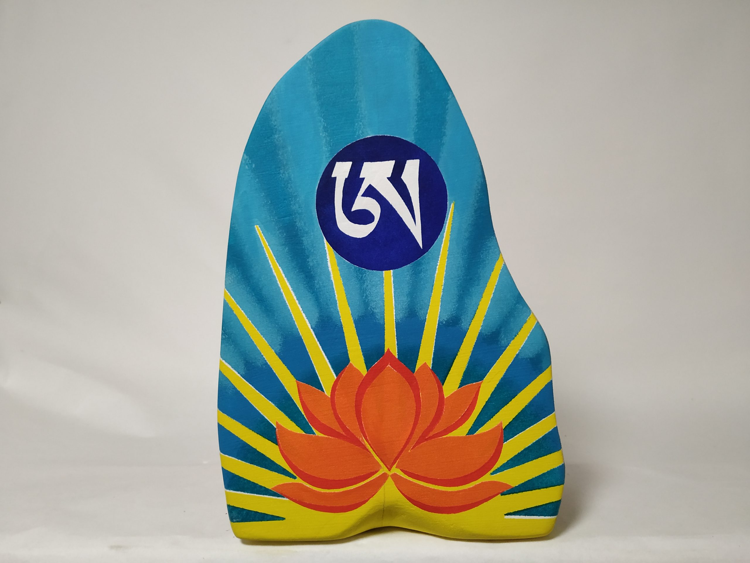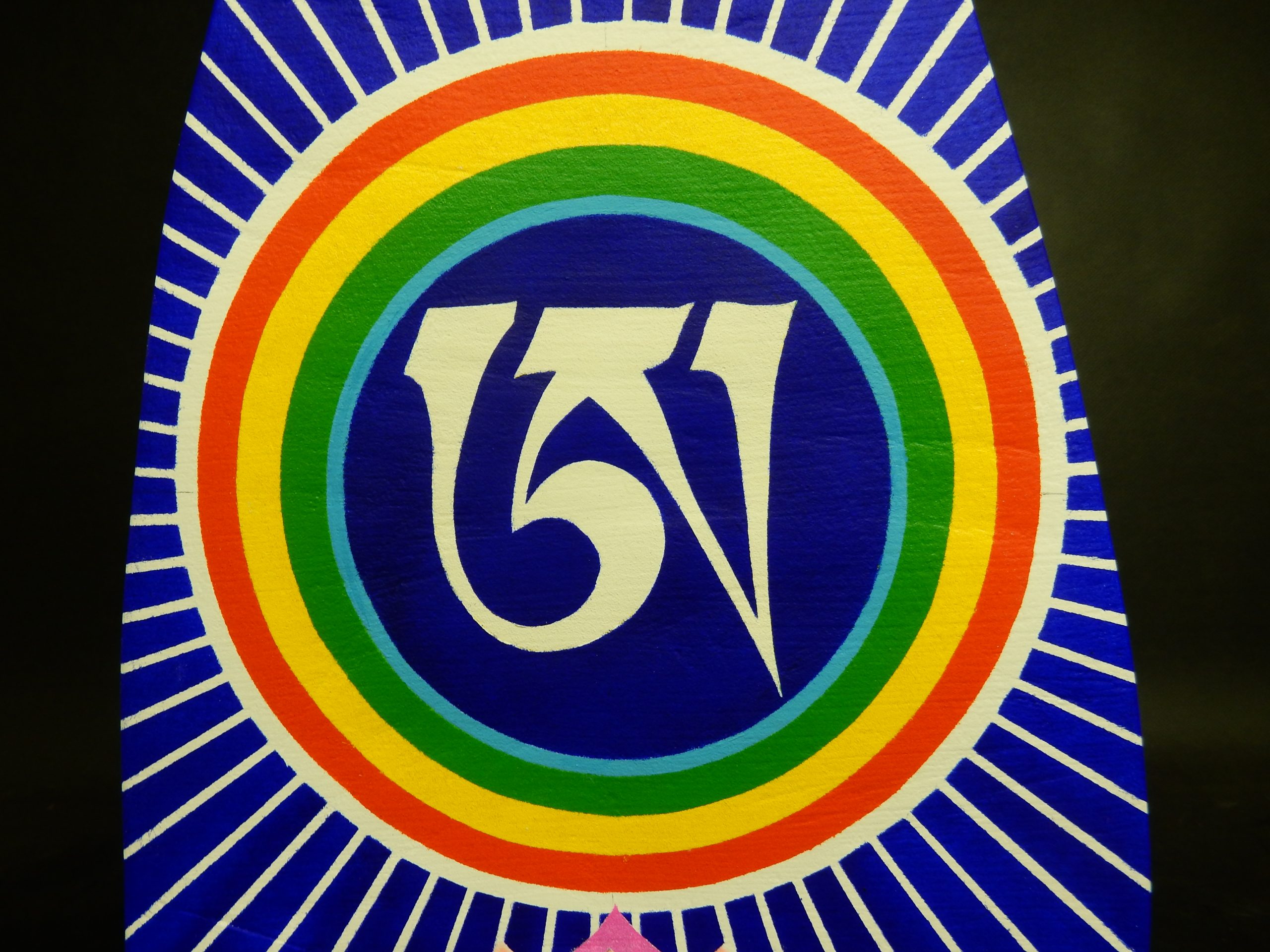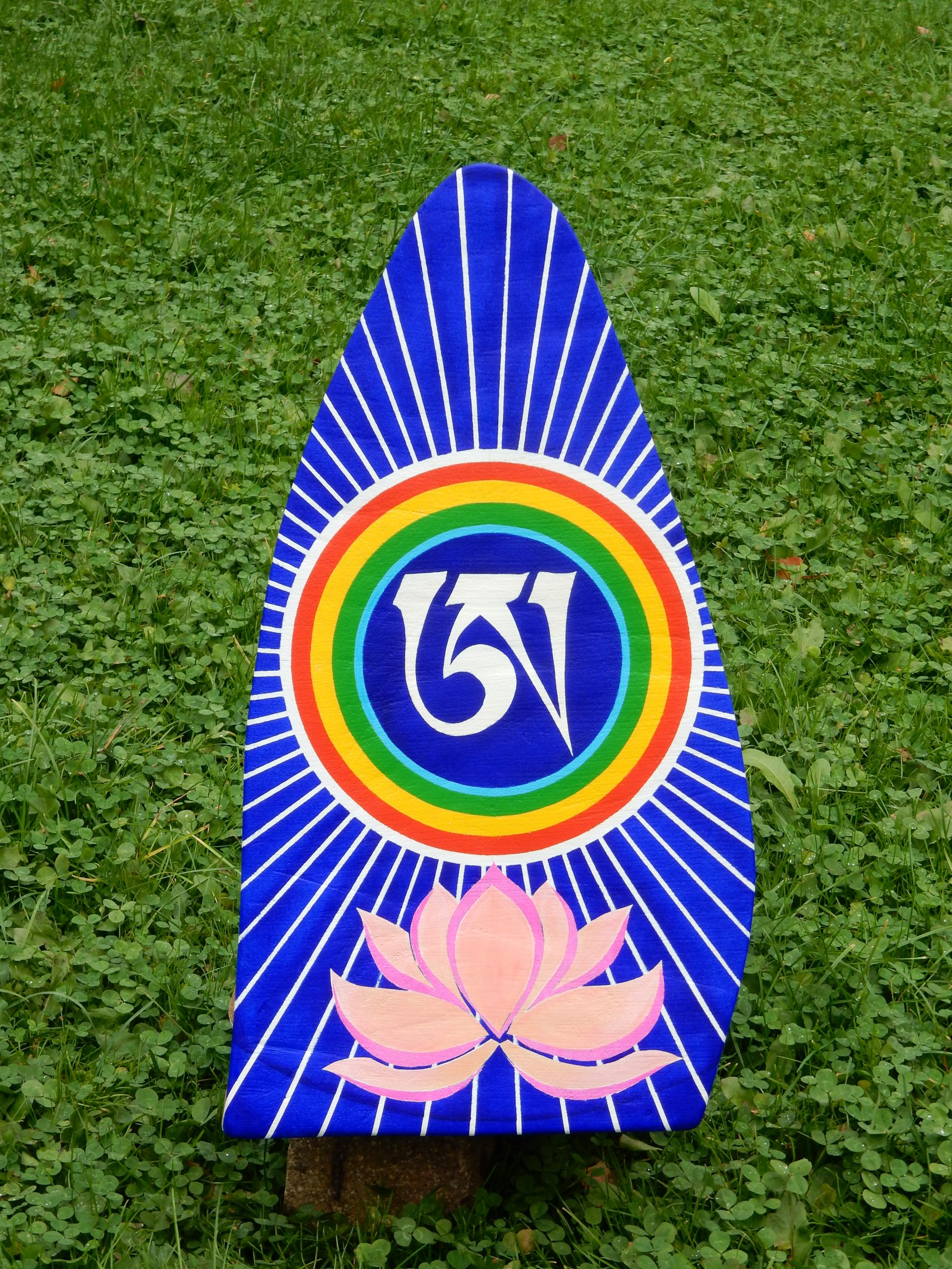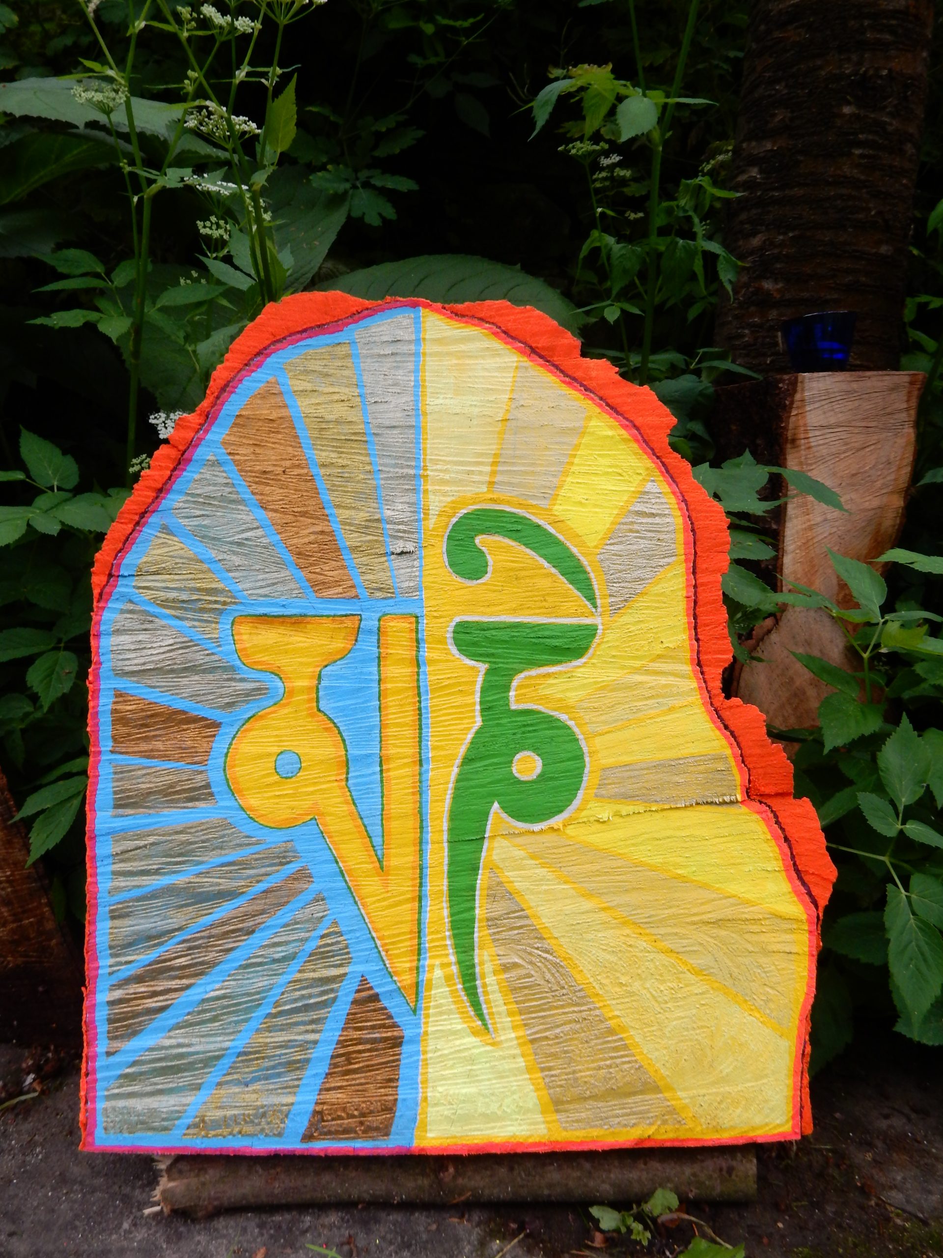 Martin Schnee bearbeitet die vorbehandelten Hölzer weiter. Er grundiert/ bemalt die Holzrohlinge. Auf dem farbigen Hintergrund bringt er ein Mantra an. Farben haben im tibetischen Buddhismus traditionell eine tiefere Bedeutung. Martin Schnee gestaltet Manihölzer in traditionellen Farben und befreit sich aber auch davon und kreiert seine eigenen Farbwelten. Er hat sich intensiv mit der Symbol – und Farbwelt des Buddhismus auseinandergesetzt und hatte die Gelegenheit bei seiner Pilgerreise nach Nepal Einblicke in die Tsering Artschool im Kloster shechen in Nepal zu bekommen.