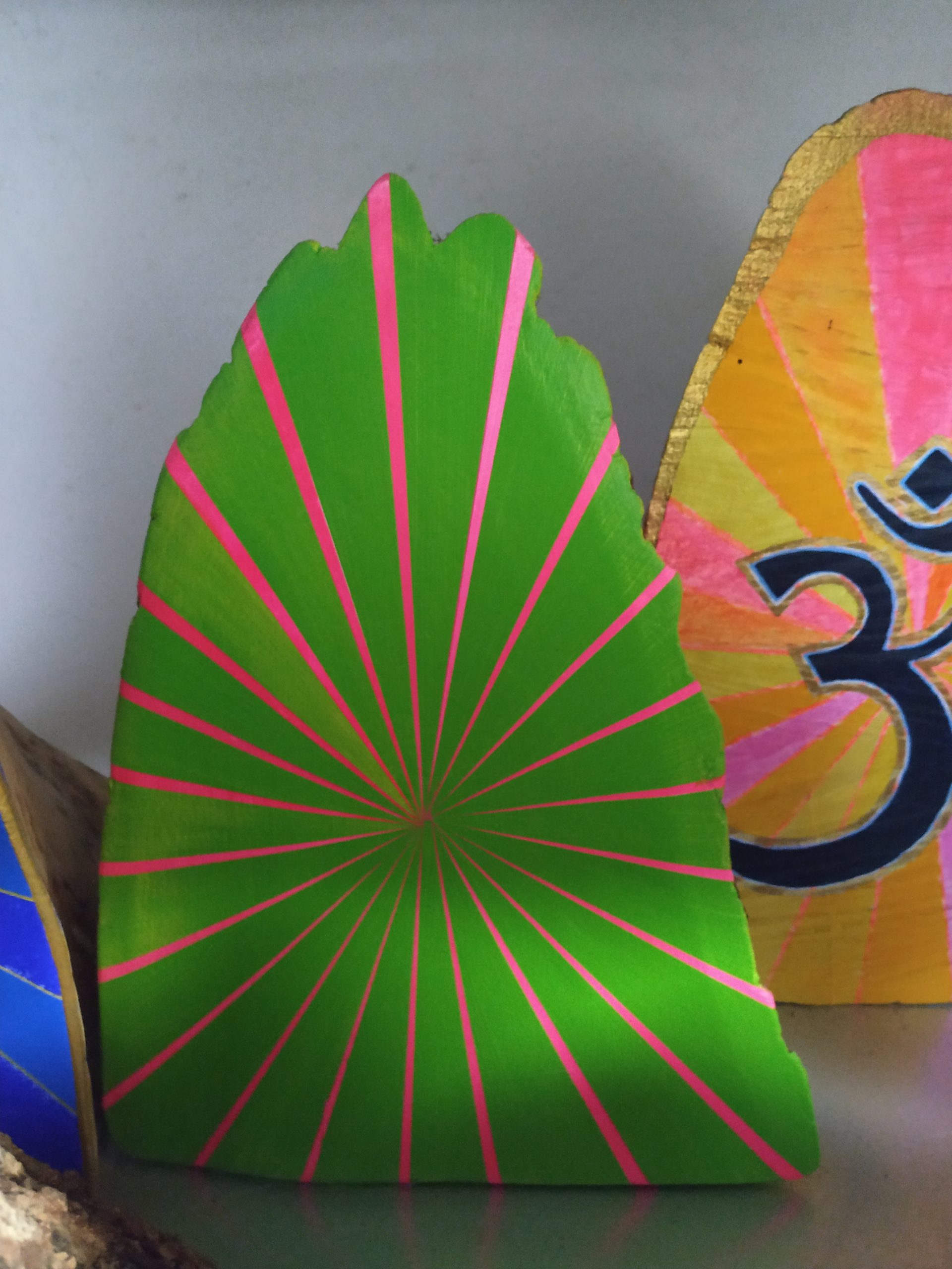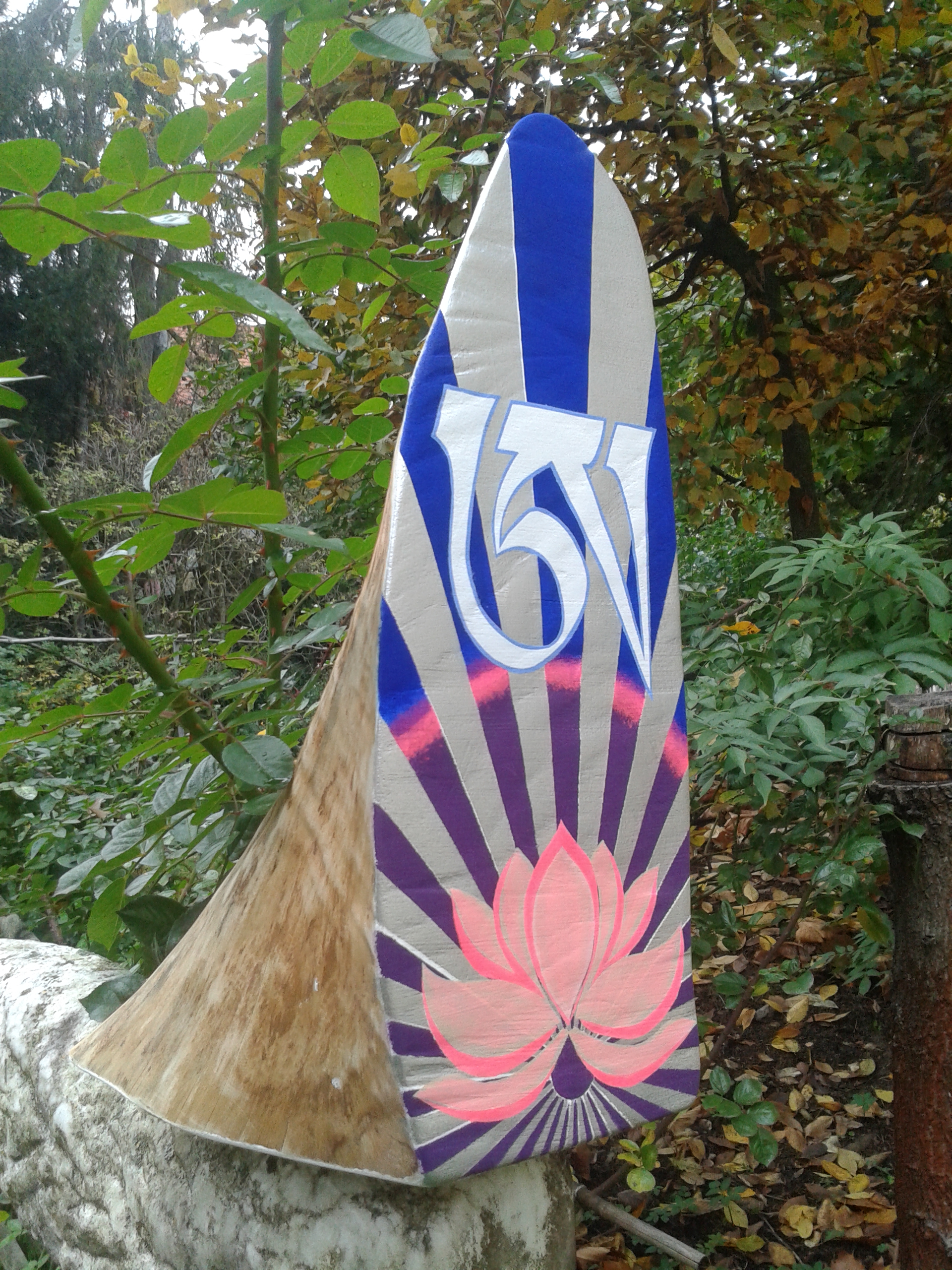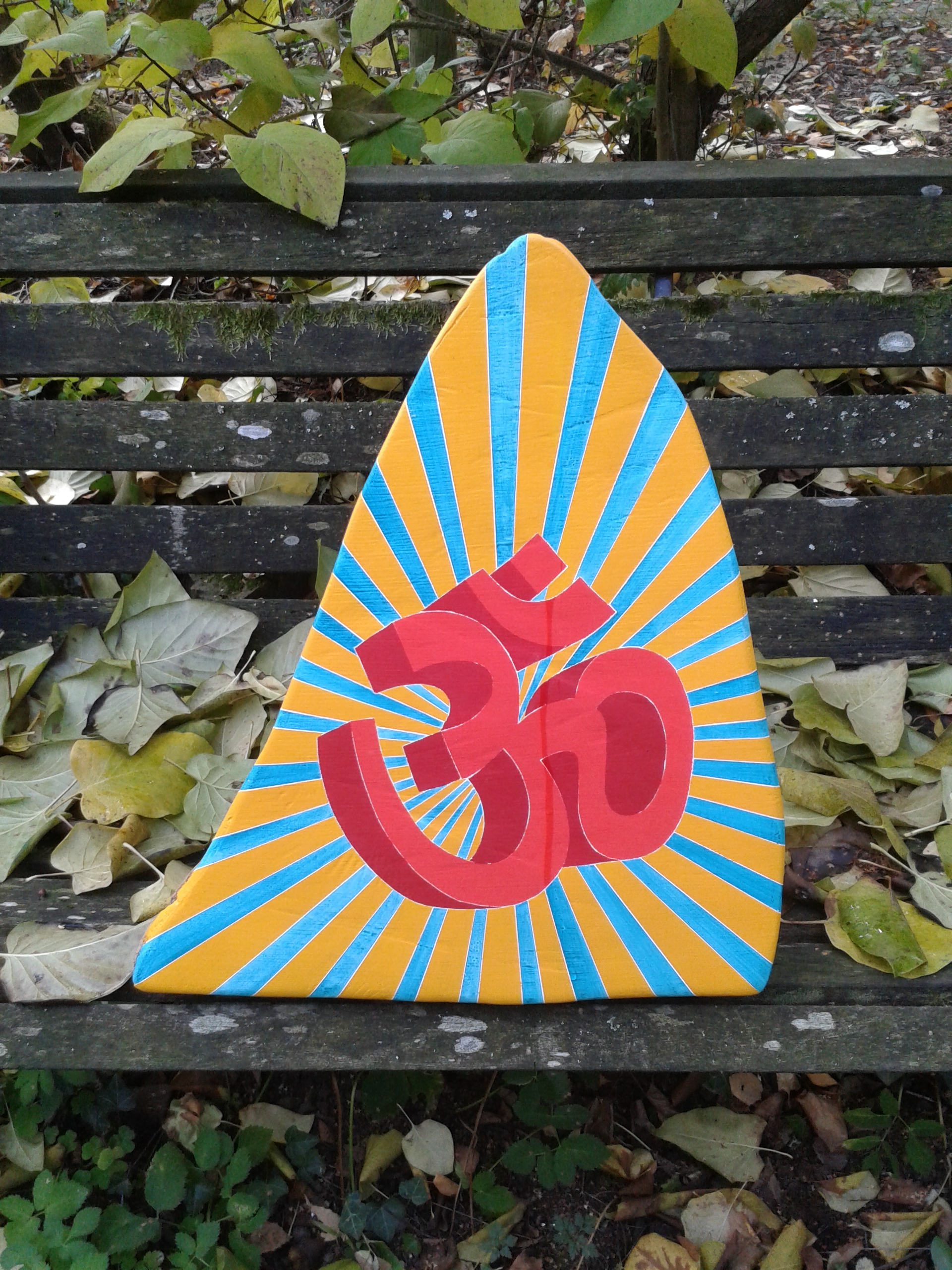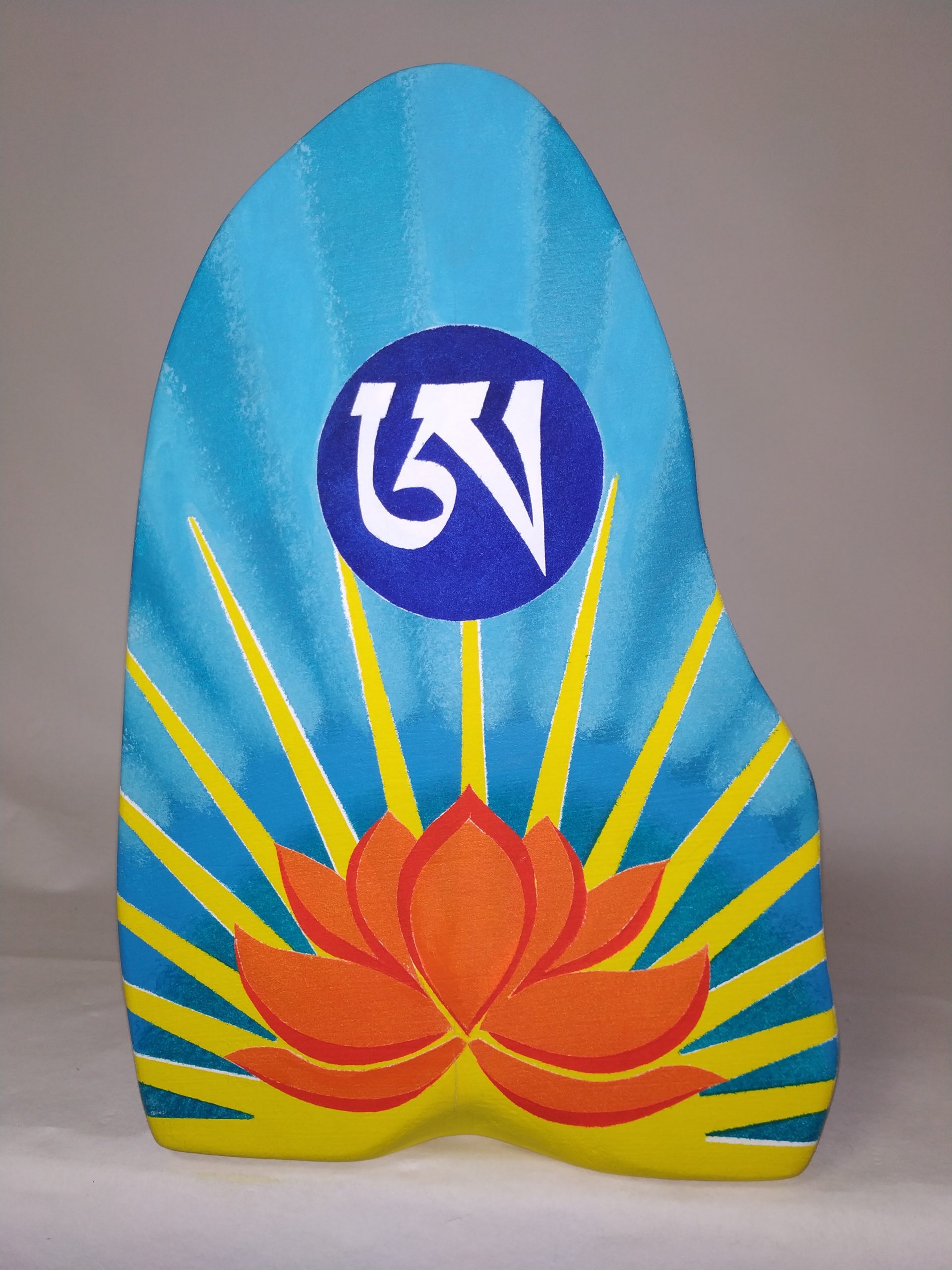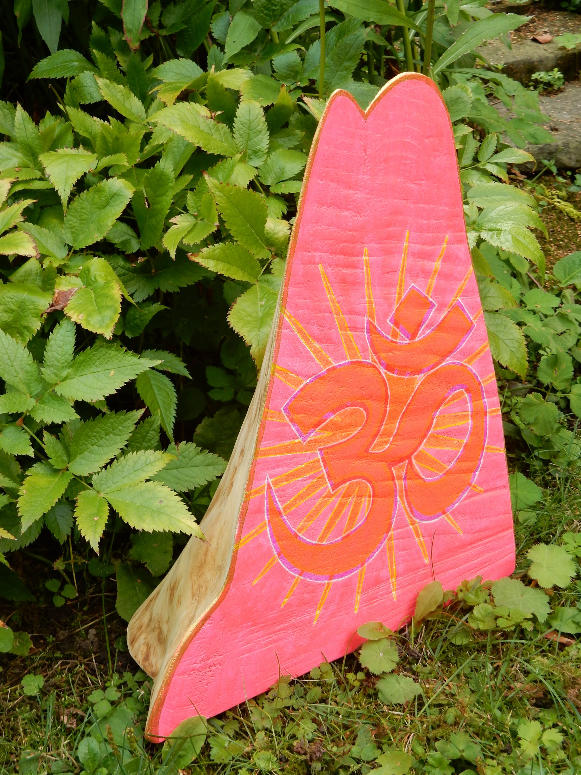 Martin Schnee bearbeitet die vorbehandelten Hölzer weiter. Er grundiert/ bemalt die Holzrohlinge. Auf dem farbigen Hintergrund bringt er ein Mantra an. Farben haben im tibetischen Buddhismus traditionell eine tiefere Bedeutung. Martin Schnee gestaltet Manihölzer in traditionellen Farben und befreit sich aber auch davon und kreiert seine eigenen Farbwelten. Er hat sich intensiv mit der Symbol – und Farbwelt des Buddhismus auseinandergesetzt und hatte die Gelegenheit bei seiner Pilgerreise nach Nepal Einblicke in die Tsering Artschool im Kloster shechen in Nepal zu bekommen.