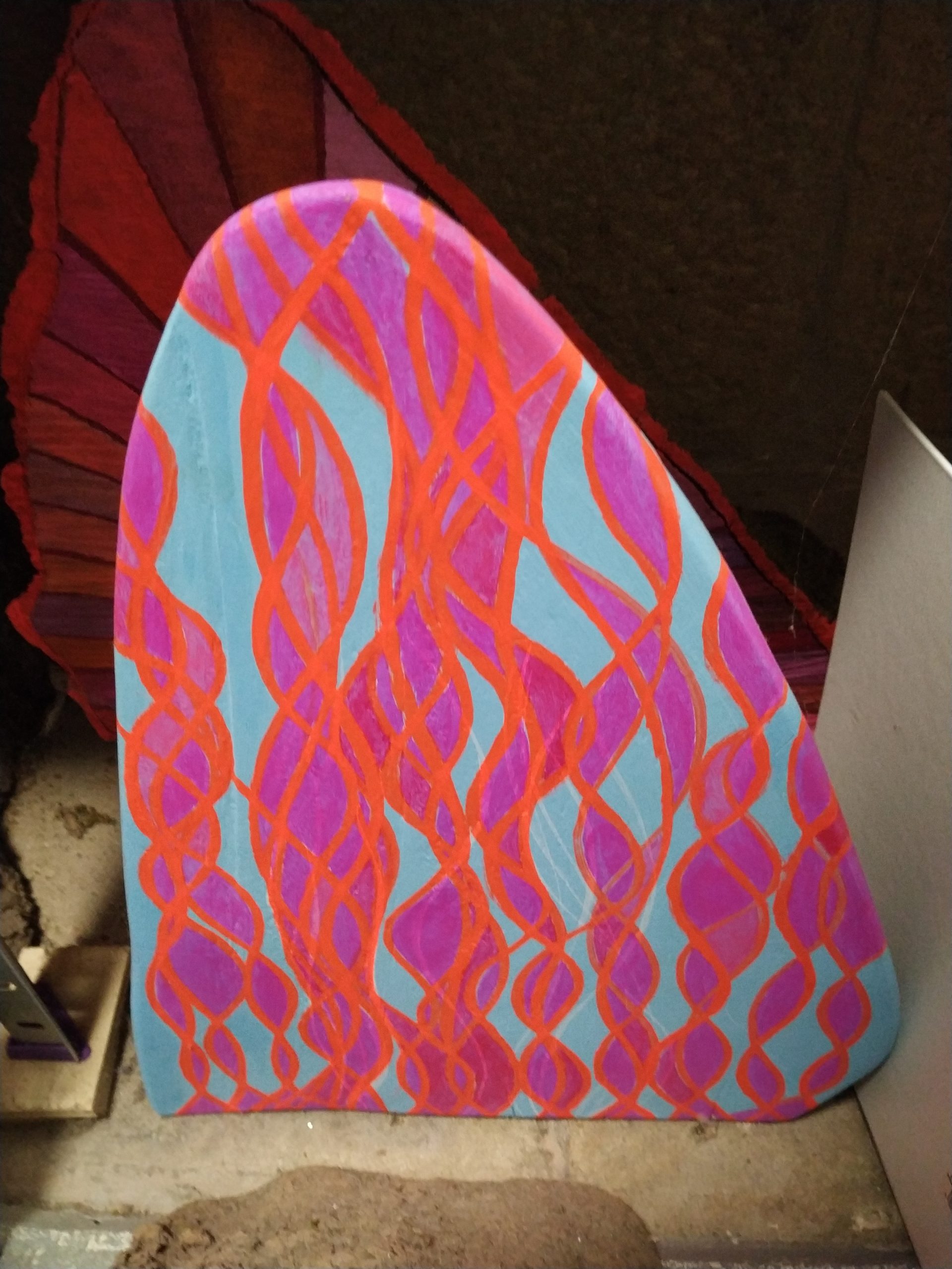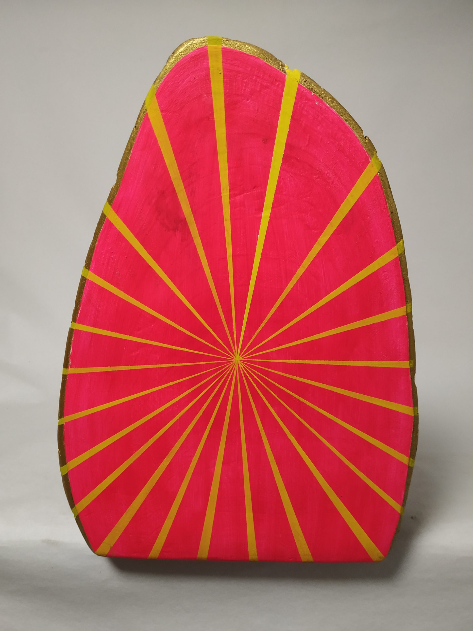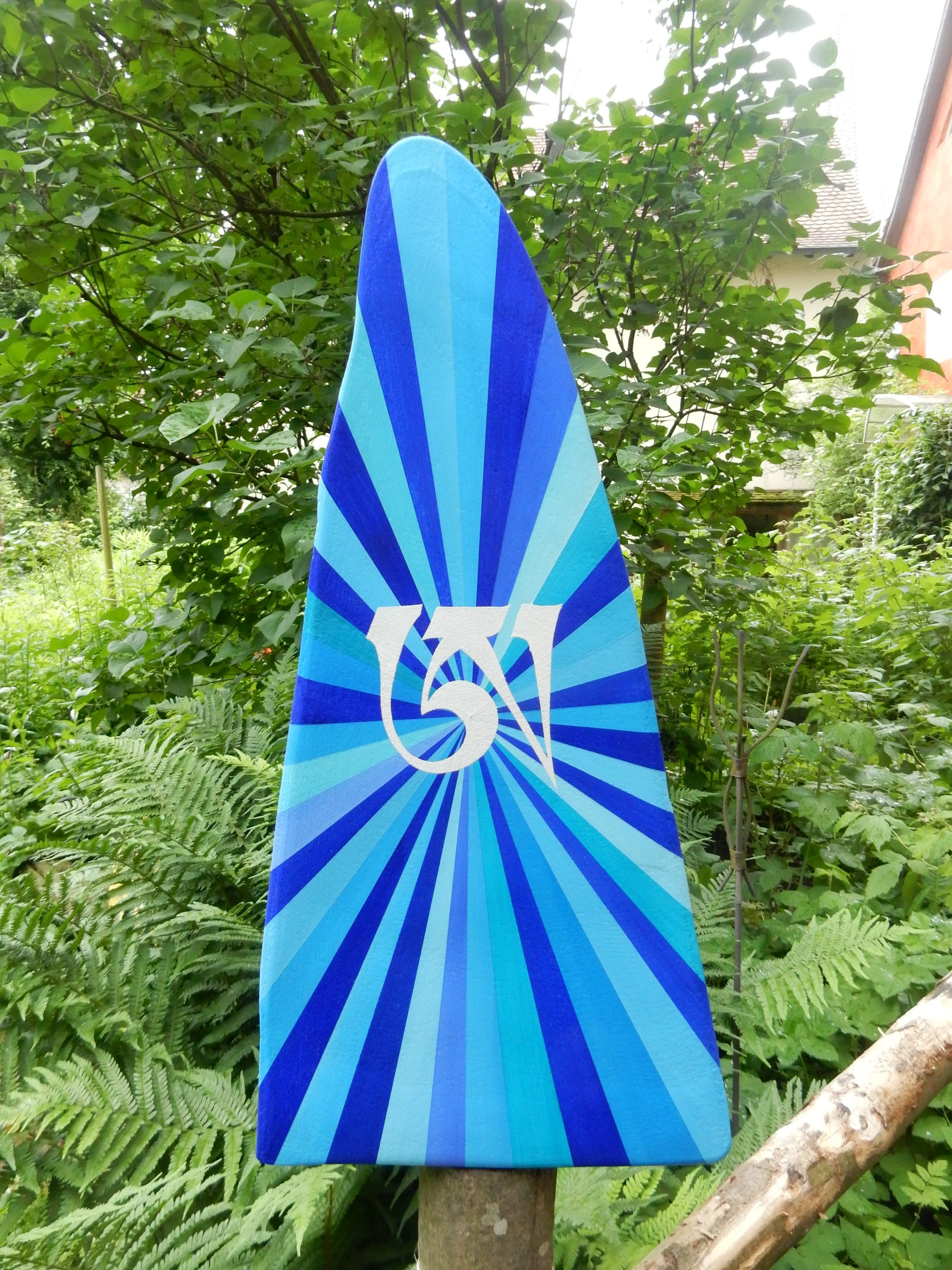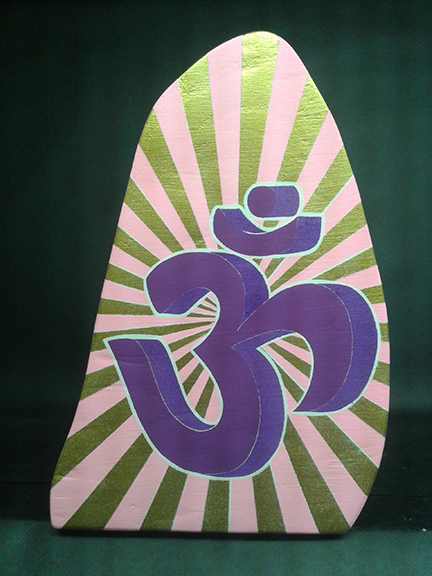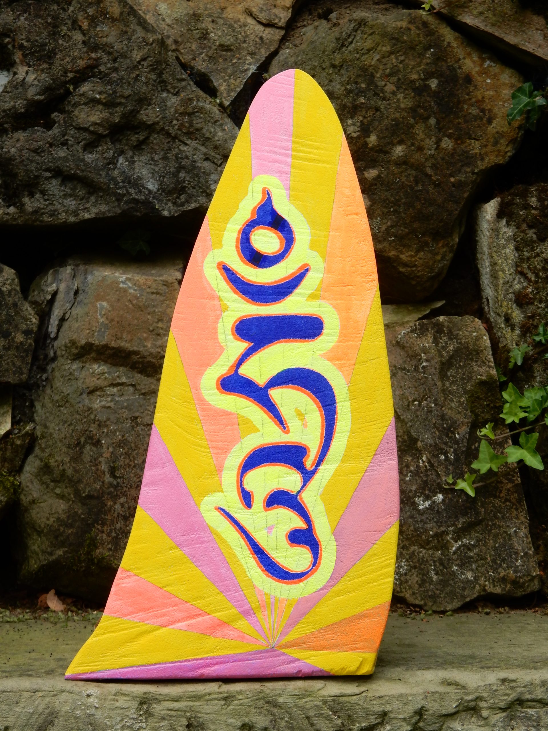 Martin Schnee bearbeitet die vorbehandelten Hölzer weiter. Er grundiert/ bemalt die Holzrohlinge. Auf dem farbigen Hintergrund bringt er ein Mantra an. Farben haben im tibetischen Buddhismus traditionell eine tiefere Bedeutung. Martin Schnee gestaltet Manihölzer in traditionellen Farben und befreit sich aber auch davon und kreiert seine eigenen Farbwelten. Er hat sich intensiv mit der Symbol – und Farbwelt des Buddhismus auseinandergesetzt und hatte die Gelegenheit bei seiner Pilgerreise nach Nepal Einblicke in die Tsering Artschool im Kloster shechen in Nepal zu bekommen.